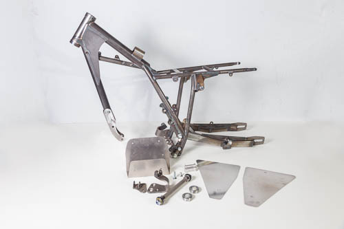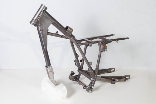 The TIG welding is done with special welding wire. The basis for this frame is the standard XR500, but most of the times customers choose for a tank, buddyseat, fenders, wheels and suspension of a CR250 ’79 or ’80.
