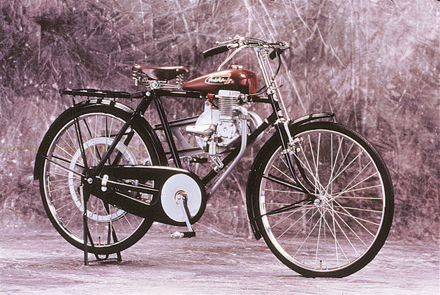 The history of Honda is one of Soichiro Honda, a Japanese talented engineer and businessman who loved technology and speed. His first steps into the business was the foundation of a factory in cylinder rings. Later on he sold that company to Toyota. He uses the money of that sale to realize a dream: create affordable transport for the common man. That is something which was lacing enormously during the first years after the World War II in Japan, where public transport was below standard and fuel was limited. Honda buys 500 engines which were build during the war to power electrical generators and rebuilds them so they can be used as a power source for a bicycle. Soon he starts to make complete “motorcycles” using these engines.