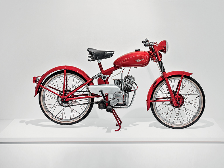 Na juli 1949 begon het bedrijf uit Borgo Panigale met de verkoop van deze fiets, waarvan het belangrijkste kenmerk het frame was dat was ontworpen door Gian Luigi Capellino (voorheen de ontwerper van soortgelijke frames gemaakt in samenwerking met Caproni, uit Trento), terwijl de motor in feite een bijgewerkt, verbeterde 60 cc-versie van de “Cucciolo” -motor, met een versnellingsbak met drie versnellingen met schakelpedaal en de tuimelaars op passende wijze beschermd door een aluminium afdekking.