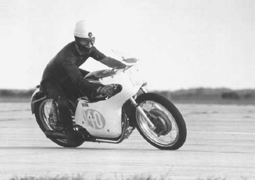 Fabrieks coureur Franco Farne met een Ducati mach 1 sc